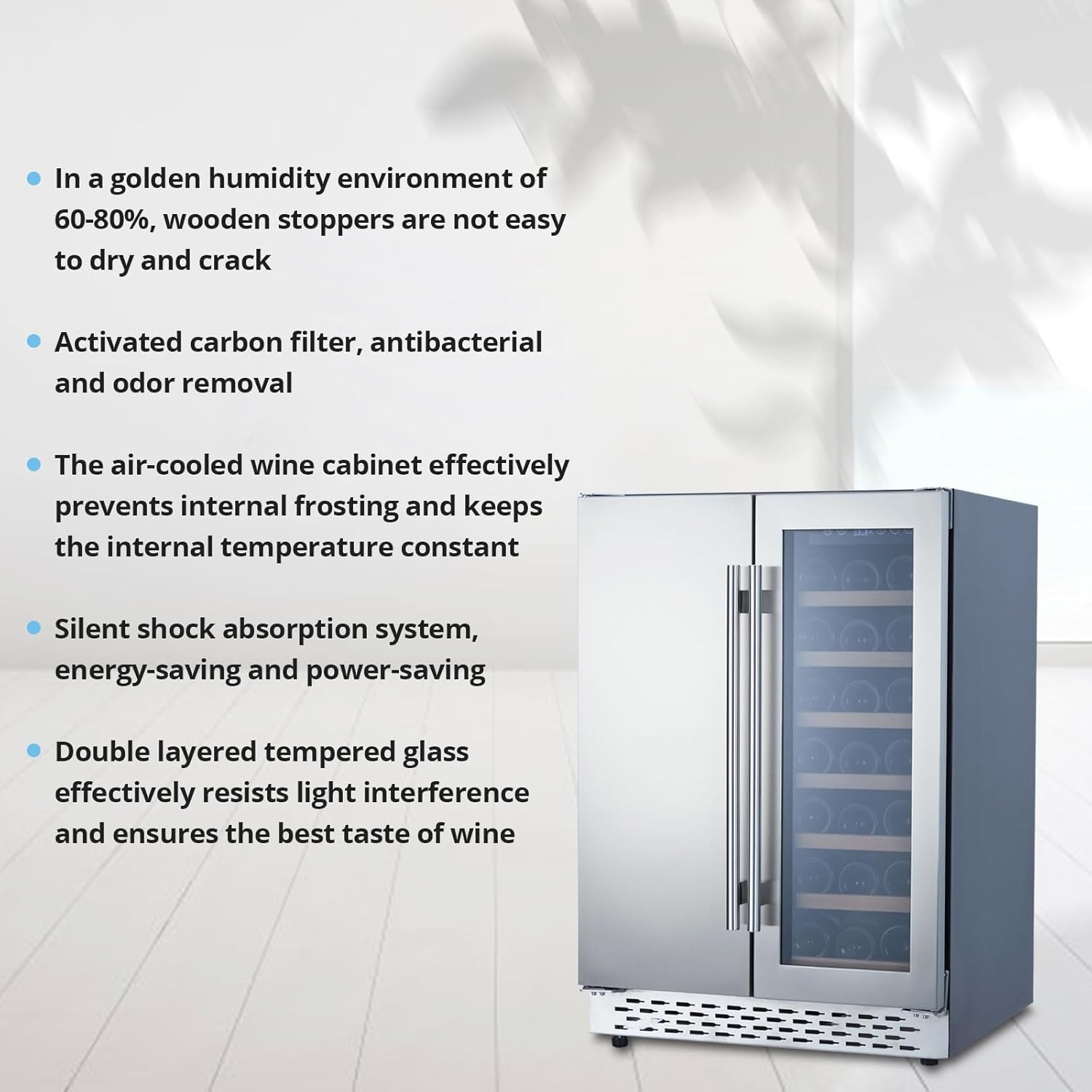 Elevate your beverage storage with this Wine Refrigerator and Beverage Cooler, designed to hold up to 54 cans and 20 bottles of your favorite drinks. Perfect for wine enthusiasts and party hosts, this large freestanding cooler features digital temperature control for precise cooling and a double-layer glass door to maintain optimal freshness. The sleek design blends seamlessly into any home or bar, while the spacious interior accommodates a variety of beverages, including red and white wine, champagne, and beer. Whether you’re entertaining guests or enjoying a quiet night, this cooler ensures your drinks are always perfectly chilled.